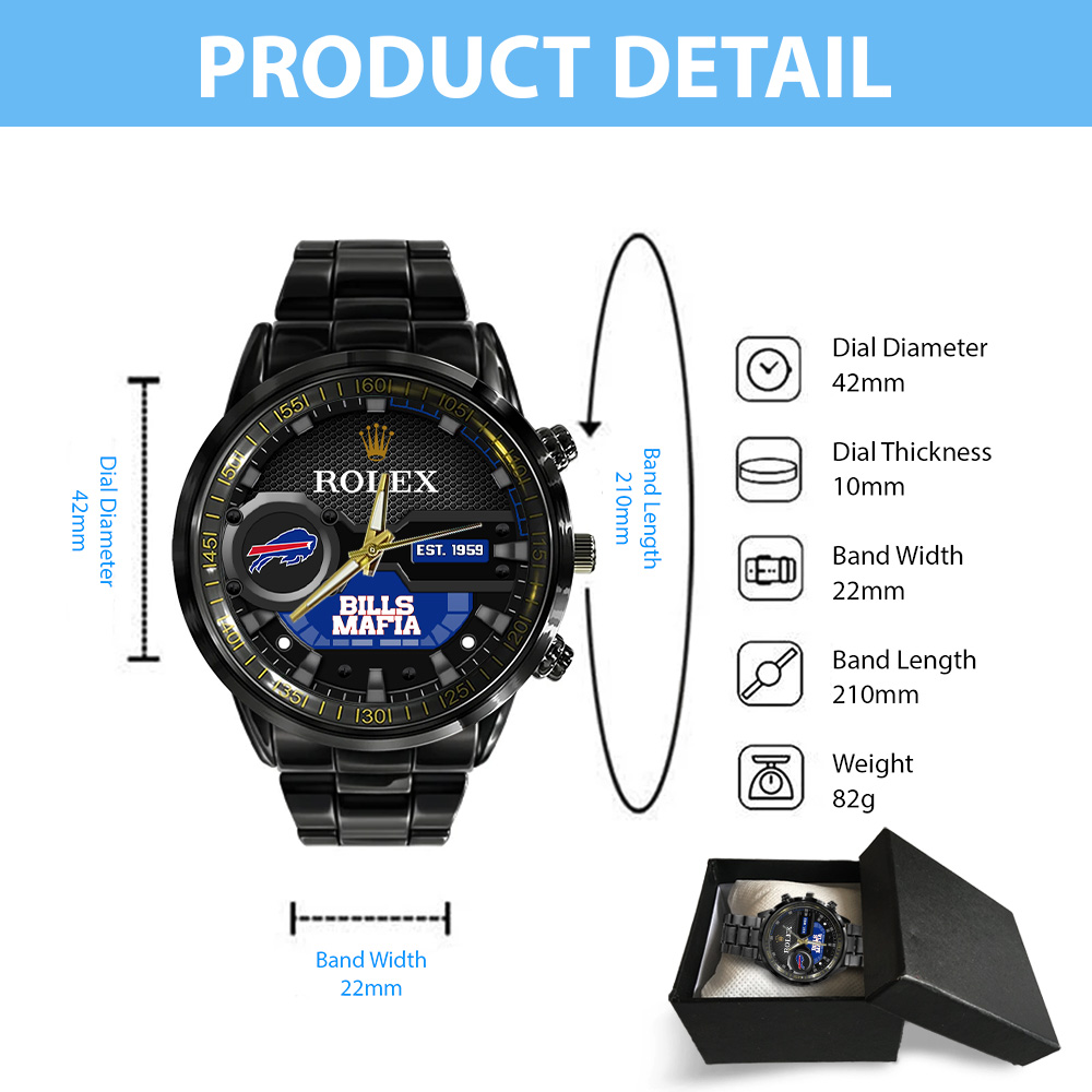 This Custom Stainless Steel Watch will make a perfect gift for Buffalo Bills fans.