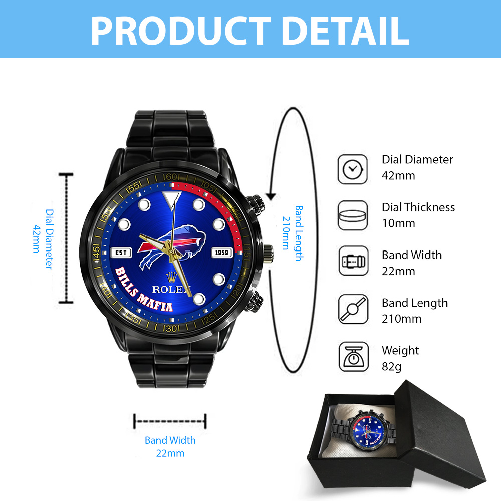 This Custom Stainless Steel Watch will make a perfect gift for Buffalo Bills fans.