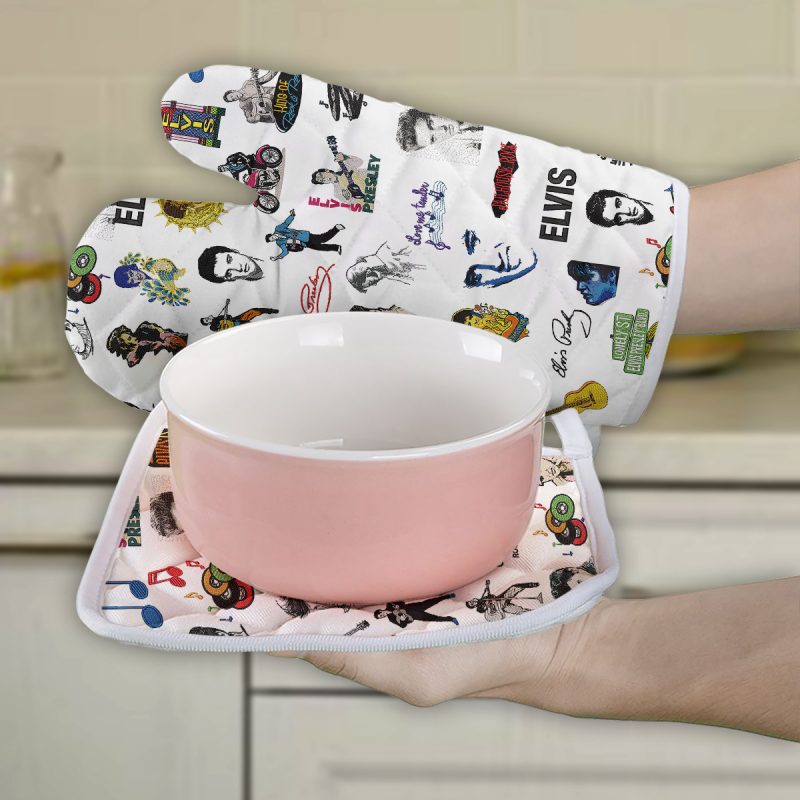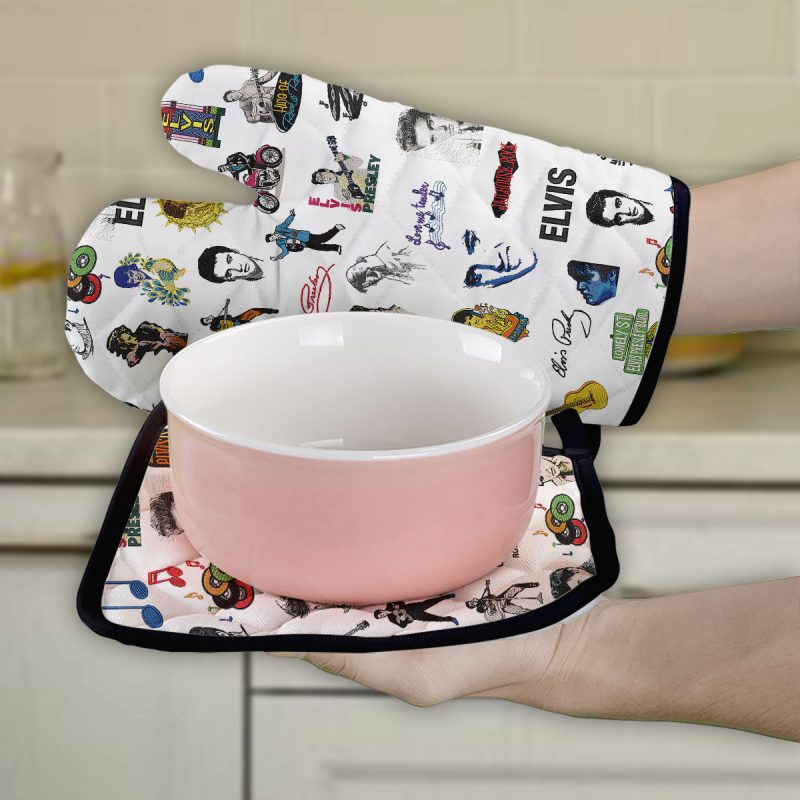 This Combo 2 Oven Mitts and 1 Pot-Holder will make a perfect gift for Elvis Presley fans.